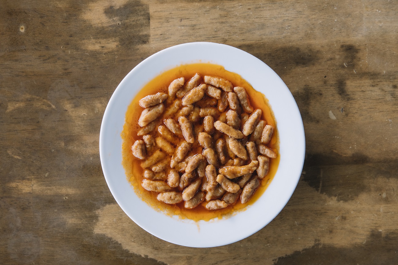 Yumurta, rendelenmiş soğan, tuz ve karabiber ile yoğrulmaya başlanan kıymaya un da ilave edilerek kulak memesi kıvamı verilir. Fındık büyüklüğünde kopartılarak avuç içinde yuvarlanan parçalar bir tavada kızartılır. Ayrı bir tencerede tereyağı eritilerek, tuz, kırmızıbiber ve su kaynatılıp içine yuvarlamalar atılarak yaklaşık 45 dakika pişirilir. Pişen yemeğin üzerine ezilmiş kese yoğurdu ve kızdırılmış yağ içine konulan toz biber gezdirilerek servis edilir.